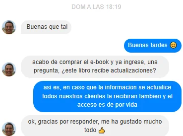 El ebook está alojado en la plataforma más grande de cursos, talleres y formaciones online de habla hispana: Hotmart. Luego de que tu pago impacte en el sistema recibirás 2 correos electrónicos, uno con tu comprobante de pago y otro con el acceso al ebook. Puedes descargar la app de Hotmart en tu celular o tablet si lo deseas para acceder desde allí.